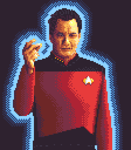 The #PixelDailies theme for today was #snap and that reminded me of just one thing: #Q. I'm not very skilled at drawing #pixelart portraits, especially with a limited palette, but I hope John De Lancie