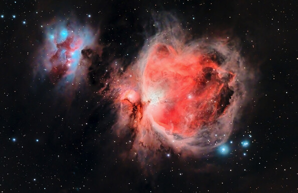 I wanted to "blow out the bright stars" here just to see if i could figure out how to mask/handle the dust. Of course, when you blow out the stars, you lose the trapezium, but you get some new cool detail. Curtains of dust!! Orion is 24 light years across.