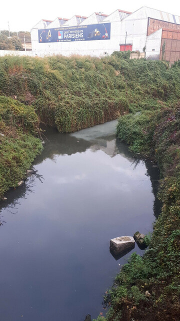 C'est l'embouchure du cours d'eau du Ru de la Vieille Mer vers la #Seine , reflétant l'état déplorable de l'eau . c'est comme cela tous les jours non-stop. On y trouve de tout, du frigo au bidon d'essence.