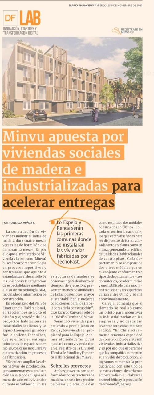 Empresa TecnoFast se adjudica la construcci贸n de 160 viviendas sociales industrializadas en las comunas de Renca y Lo Espejo. Esto es parte de la agenda de Industrializaci贸n del #PlanEmergenciaHabitacional del MINVU