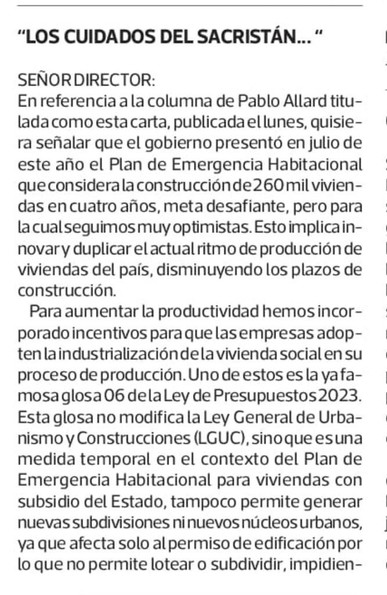 Comparto carta que me publicaron en La Tercera en que abordo los mitos que est谩n surgiendo de la vivienda tipo Industrializada en el marco del #PlanEmergenciaHabitacional del MINVU