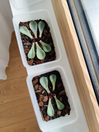 I started to propagate #succulents a few weeks ago. The leaves are from a plant that has grown a bit too weirdly and it started to tilt/break, so I cut it and used the left-over leaves to create offspring - and look how they grow!