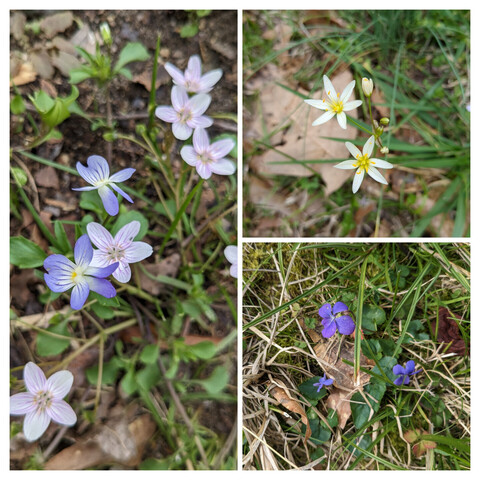 #florespondence from our lawn, Field Pansies with Virginia Spring Beauty, False Garlic, and Wood Violet. IDs from the wonderful #plantnet app