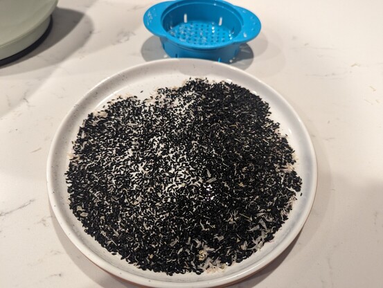 I haven't researched how to get seeds from chive flowers yet. I had meant to, but I just walked by the plant and saw the little black seeds popping out loosely. Figured I'd lose them to the wind soon if I didn't take em now #gardening #plantpirate #propagation