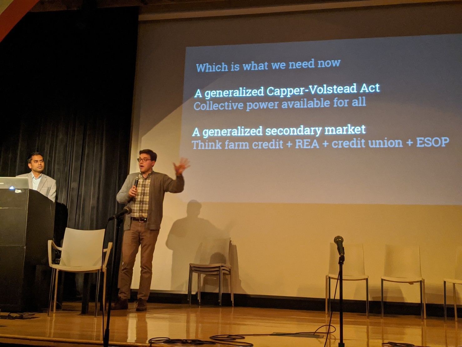 #platfomcoop conference wrapping up with @ntnsndr laying out some BHAGs for building the #coop movement:
