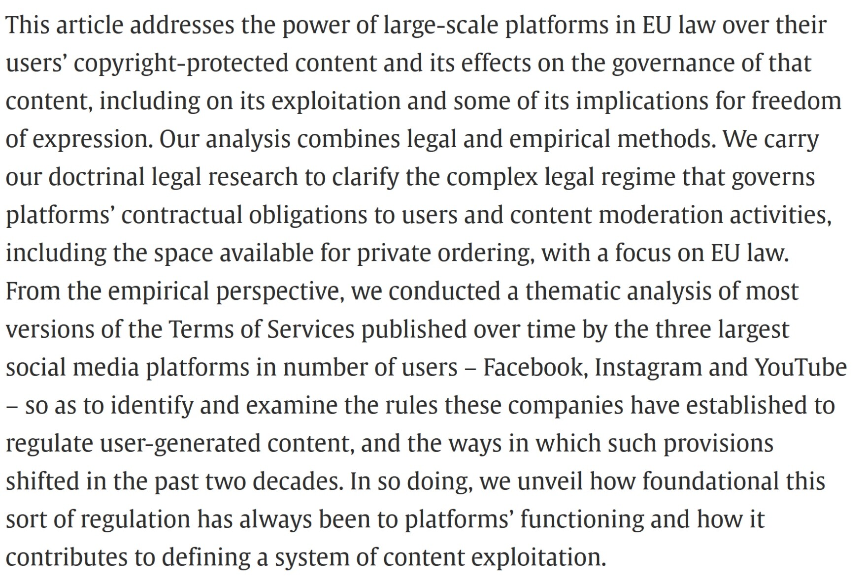 📢 "How platforms govern users’ copyright-protected content: Exploring the power of private ordering and its implications", new #OpenAccess article w/ Giovanni de Gregorio & J.C. Magalhães on the Computer Law & Security Review