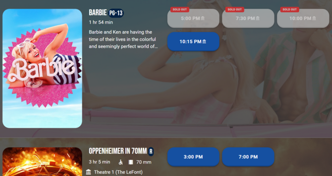 So here's how the Barbie vs. Oppenheimer competition is going at my neighborhood theater. #Barbie #Oppenheimer #movies #PlazaTheatre