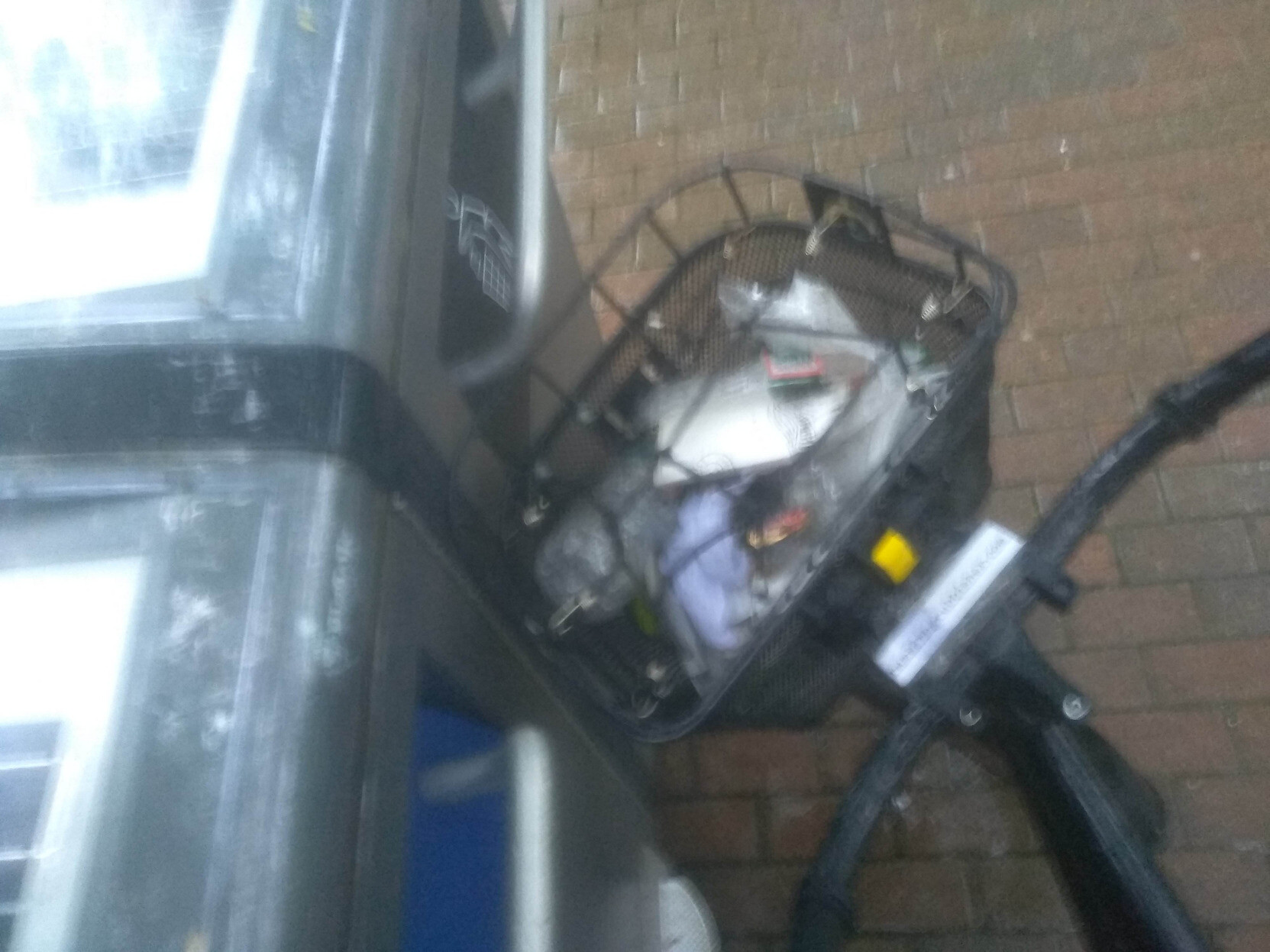 A blurry basket of litter plicykled (picked up while bicycling without stopping) off the streets and paths of #Boston on a very rainy Saturday evening ride. It was dumped in the Dr. Kenneth C. Edelin Square and poorly documented with photography. #plicykling #Biketooter