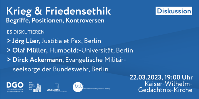 Infos und Anmeldung unter: https://dgo-online.org/kalender/berlin/2023/krieg-und-friedensethik/#anmelden