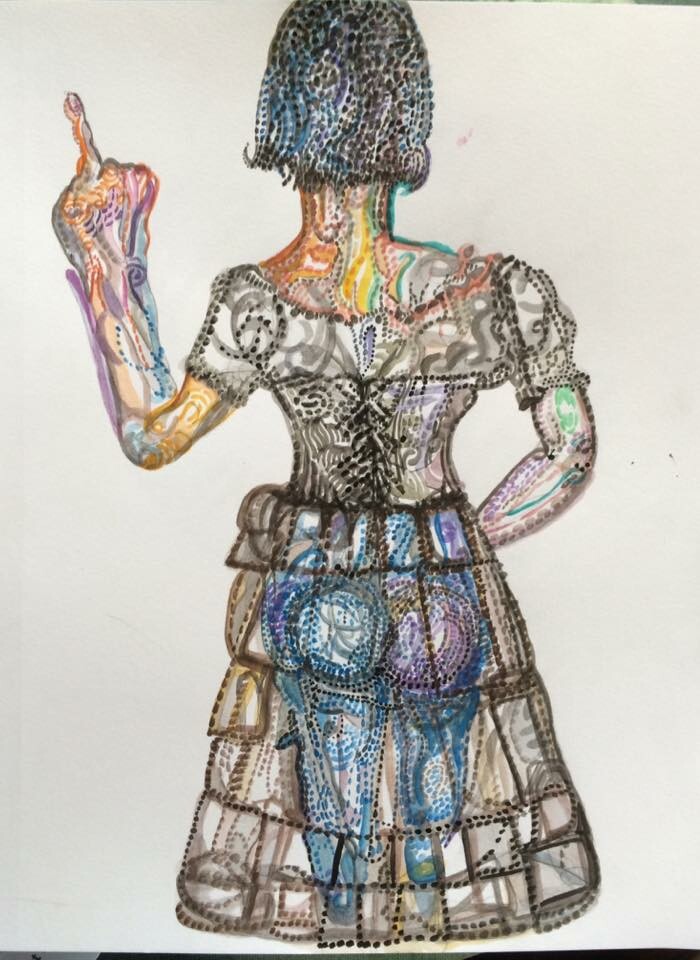 Some more from 'mooning dystopia' (rumps against ____) as a farewell from this Washingtonian! #mastoArt #poetesss 2017 #watercolors #pointillism #bum