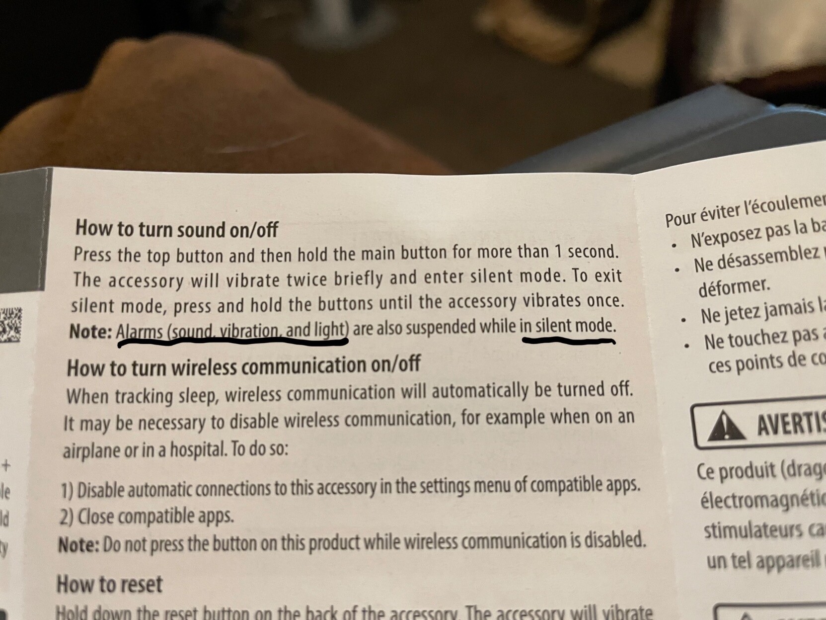 The accessory will vibrate twice briefly and enter silent mode. To exit silent mode, press and hold the buttons until the accessory vibrates once.