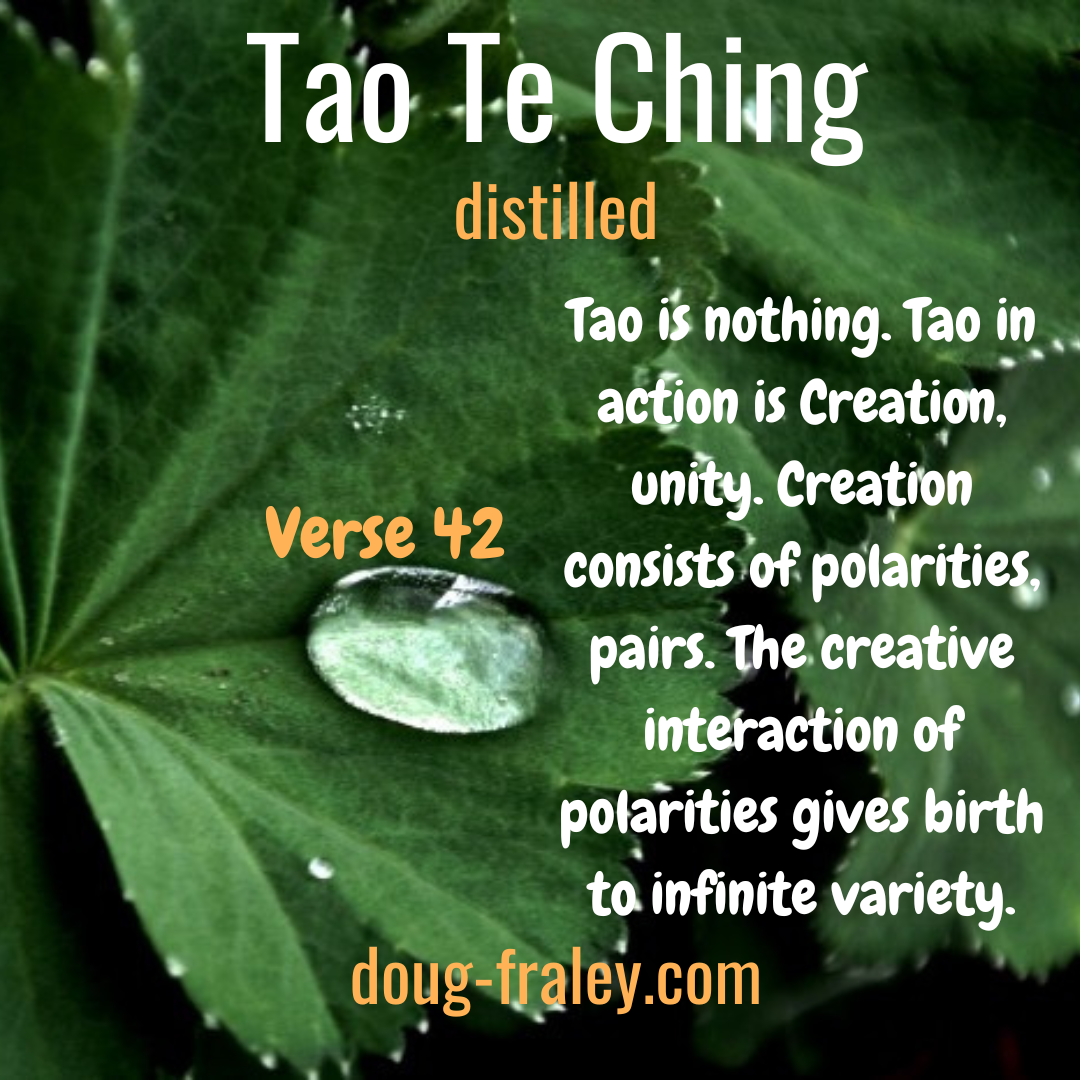 Tao is nothing. Tao in action is Creation, unity. Creation consists of polarities, pairs. The creative interaction of polarities gives birth to infinite variety.