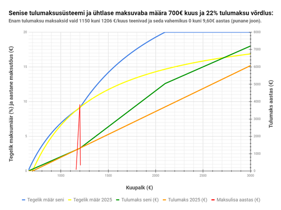 Kus ma siin nüüd küll eksida võisin, aga maksimaalne aastane tõus on 9,60€ ja seda neil, kel kuupalk on 1200€...