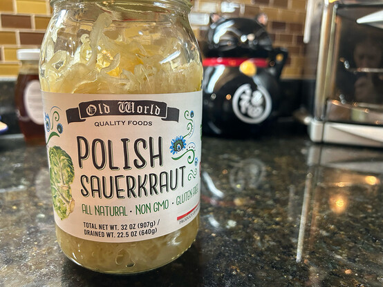 Went for the Polish comfort food for dinner. My fav way to eat it is with boiled potatoes. I add a little bit of garlic to the kraut too. #polishfood #sauerkraut