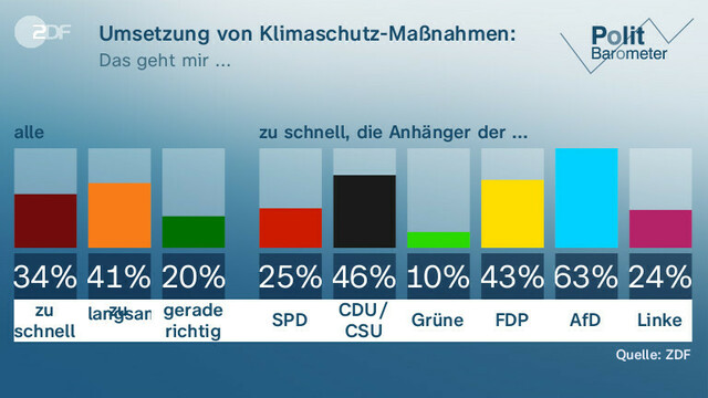 37 % der Deutschen gehen die Klimaschutzmaßnahmen in Deutschland zu weit.