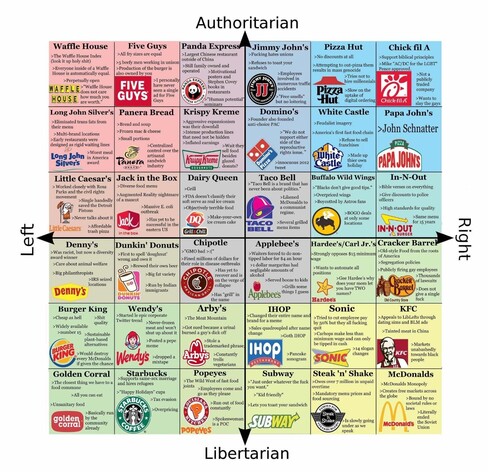 #politics #politicalcompass #restaurants #fastfood #politicalspectrum #left #right #authoritarianism #libertarianism #communism #neoliberalism