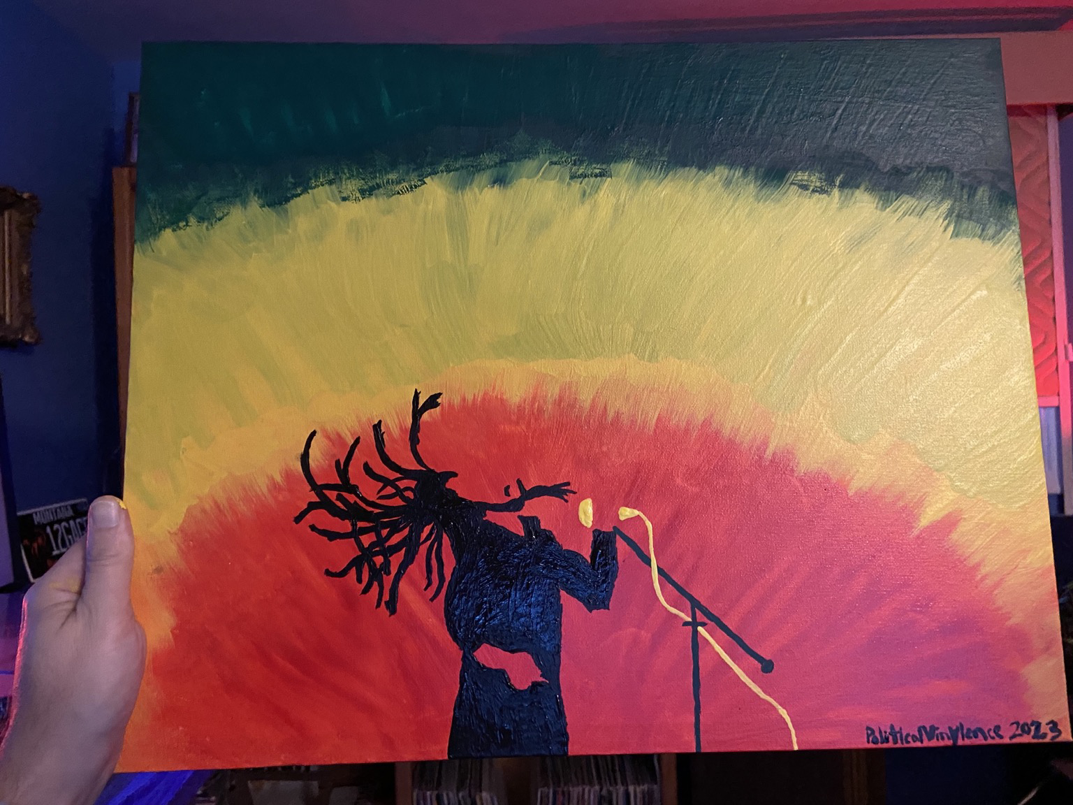 #PoliticalVinylence unofficial piece. Painted it on my live stream last night. Unofficial because it doesn’t have any broken record pieces or any vinyl on it. But it’s still a #PoliticalVinylence piece because of its content and connection to the music in particular. This was inspired by another DJ I follow who was doing an amazing live mix session in tribute of #TyreNichols. He has no idea I’m going to send it to him.