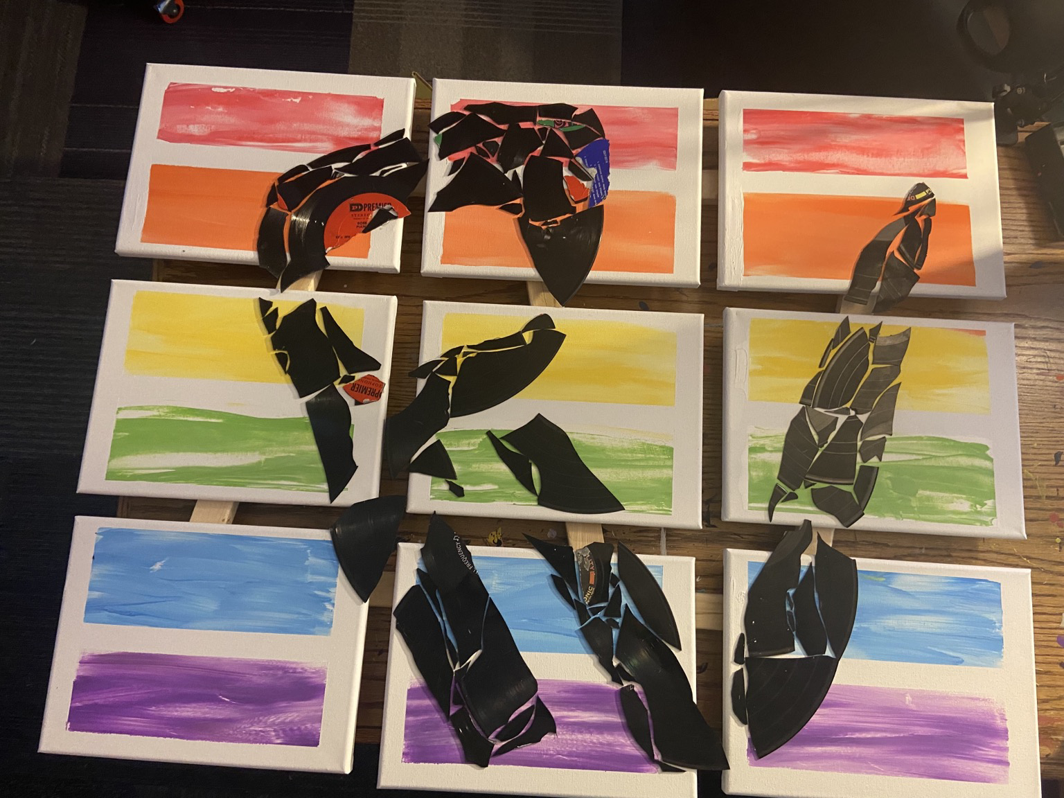 My latest complete true #PoliticalVinylence piece. True because it uses broken record pieces to make/complete the main component. 30”x40” acrylic and vinyl on canvas.