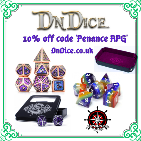 AND you can get 10% off at www.DnDice.co.uk with code 'PenanceRPG'