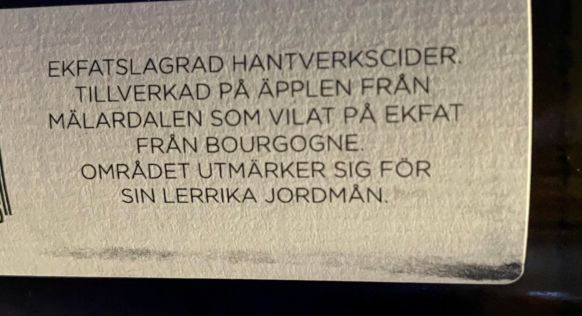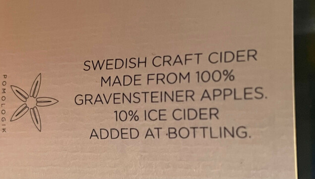 Inte lika tydlig Gravensteiner-smak som hos de Gravensteiner-cidrarna som jag provat frÄn #Pomologik. Syrlig, men lite för svag balanserande strÀvhet. Passar bÀst som mÄltidsdryck.