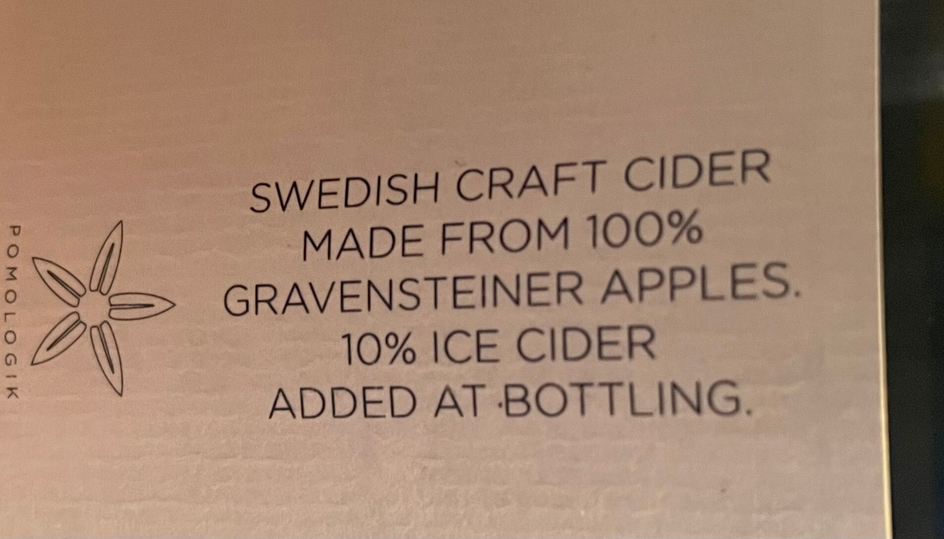 SortÀkta cider pÄ Gravensteiner, dÀr de blandat i 10 procent iscider av Gravemsteiner. Kraftfull Àppelsmak,fin balans mellan sötma och syra, och en diskret men vÀlbalanserad strÀvhet. Passar till mat, sÄvÀl som till tilltugg och för sig sjÀlv om man vill ha en cider som inte Àr för söt.