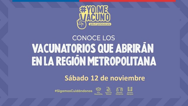 Este fin de semana (sábado y domingo) estarán disponibles los siguientes puntos de vacunación municipal en la #RM 💉