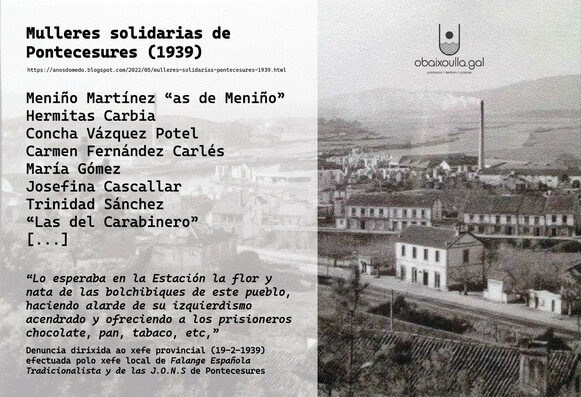 Un 19 de febreiro de 1939, o xefe local da Falange denunciaba a un grupo de mulleres que se desprazaran á Estación de #PonteCesures para dar comida aos presos políticos que levaban nun tren #OBaixoUlla vía Xosé Álvarez Castro
