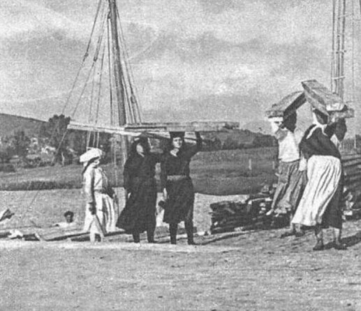 Eran as mulleres as encargadas de transportar sobre as súas cabezas a madeira que era cargada en galeóns no Porto de #PonteCesures #OBaixoUlla 📸 O Faiado da Memoria + Estampa (1934)