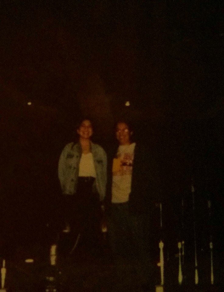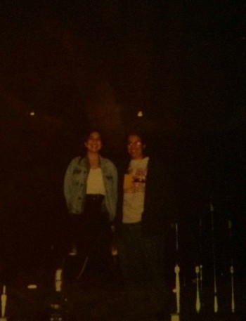 Such a happy memory. I dragged my cousin with me once the tour was announced. This pic is from the night before the show. We'd noticed the doors were open to the venue, so we walked in and were quickly caught by a roadie. Rather than throw us out, he first stood us onstage and snapped this pic. You can just see the arch in the background and our huge grins.