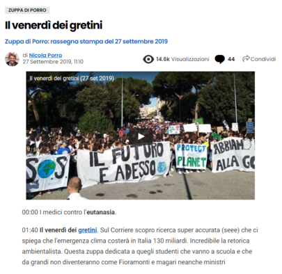 Ieri sera su Rete4 (sorpresi?) il tipico #trash #italiano #boomer si e' espresso su @UltimaGenerazi1 #crisiclimatica e mi ha fatto vergognare. Forse @giucruciani o @chiccotesta o il qui citato #Porro rappresentano bene il paese italia di oggi, forse per questo sono emigrato...