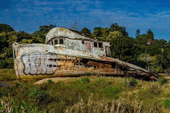 The Pt Reyes has been one of my favorite photographic subjects ever since I discovered her washed up on the shore of Tomales Bay many years ago. Idon't know much about her history, what I do know is that over the last 5-7 years I have watched her slowly deteriorate. The process was accelarated when a photographer accidently set fire to the stern. See the full image here: https://fineartamerica.com/featured/port-side-of-the-pt-reyes-bill-gallagher.html?newartwork=true #PortSideOfThePtReyes #BillGallagherPhotography #BuyIntoArt #AYearForArt