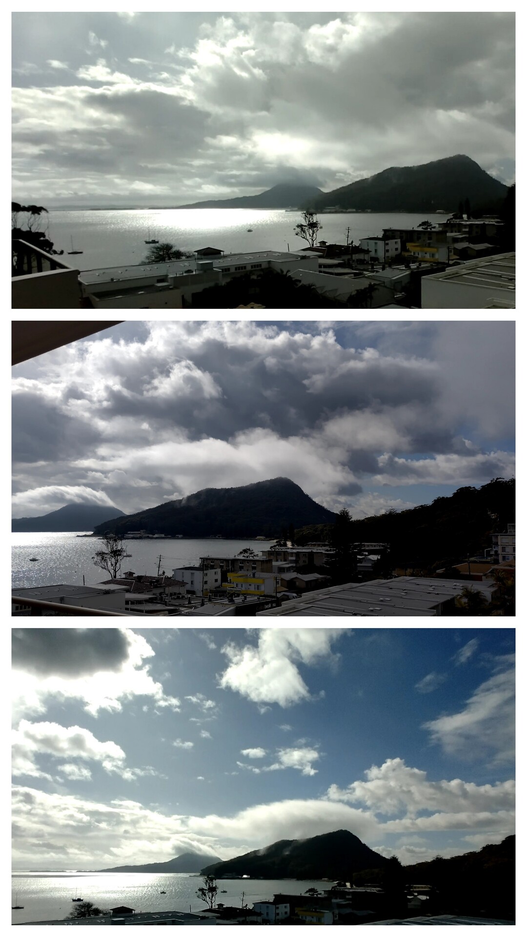 Intermittent showers, changing light on the bay waters and sky as the day progresses #PortStephens #photography