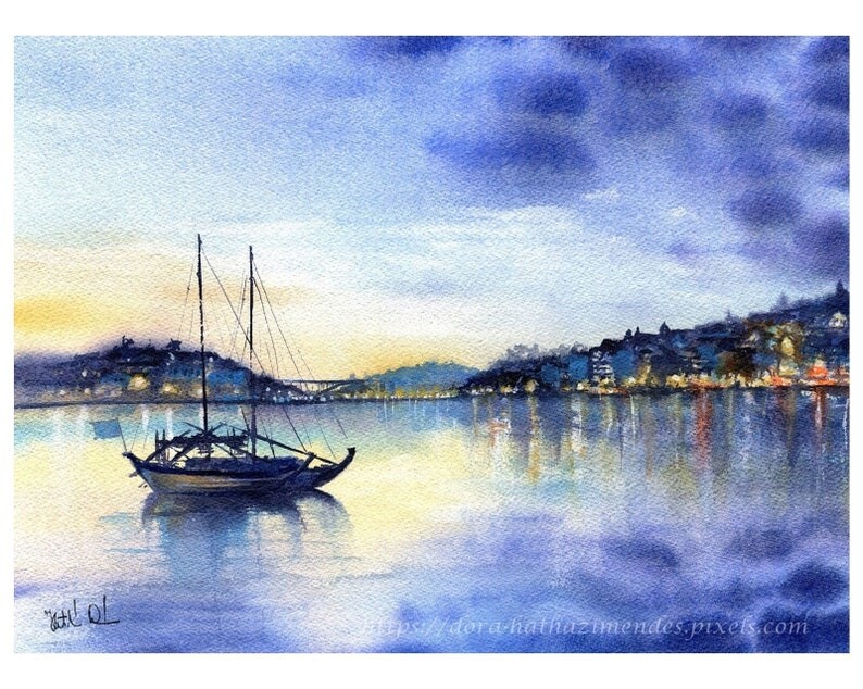 Porto Twilight original watercolor painting sold from my Karavella Atelier Etsy Shop.