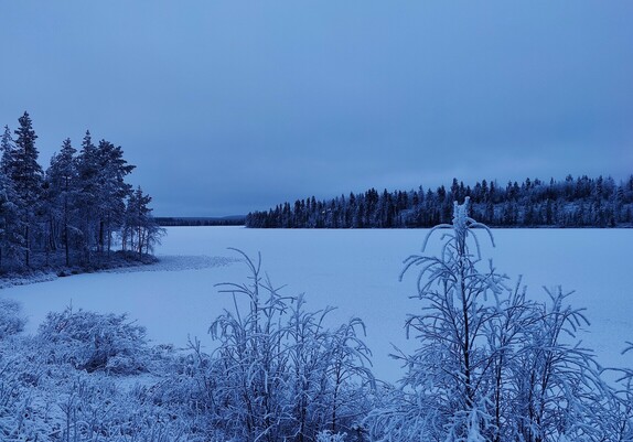 Livojärvi auringonlaskun aikaan. - 14 °C ❄️