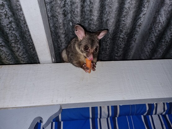 Chewie the brushtail was back this morning. We had no overnight guests this week but the food I've been leaving out has been eaten every night. It was nice to see her. She's had some apple for tea, firmly said no to carrots and will be heading out for a night of #possum business.
