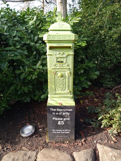 A repurposed postbox in front of the Horniman Museum, London for #postboxsaturday