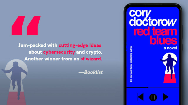 *Red Team Blues* is my next novel, a #PostCyberpunk anti-finance finance #thriller; it's a major title for my publishers Tor Books and Head of Zeus, and it's swept the trade press with starred reviews all 'round. Despite all that, #Audible will not sell the #audiobook. In fact, Audible won't sell *any* of my audiobooks. Instead, I have to independently produce them and sell them through Kickstarter: