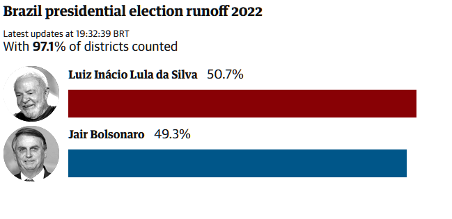 Mit weniger als 1% Vorsprung auf seinen Konkurrenten #Bolsonaro gewinnt Lula - und ich persönlich sehe ihn im direkten Vergleich für die bessere Alternative.