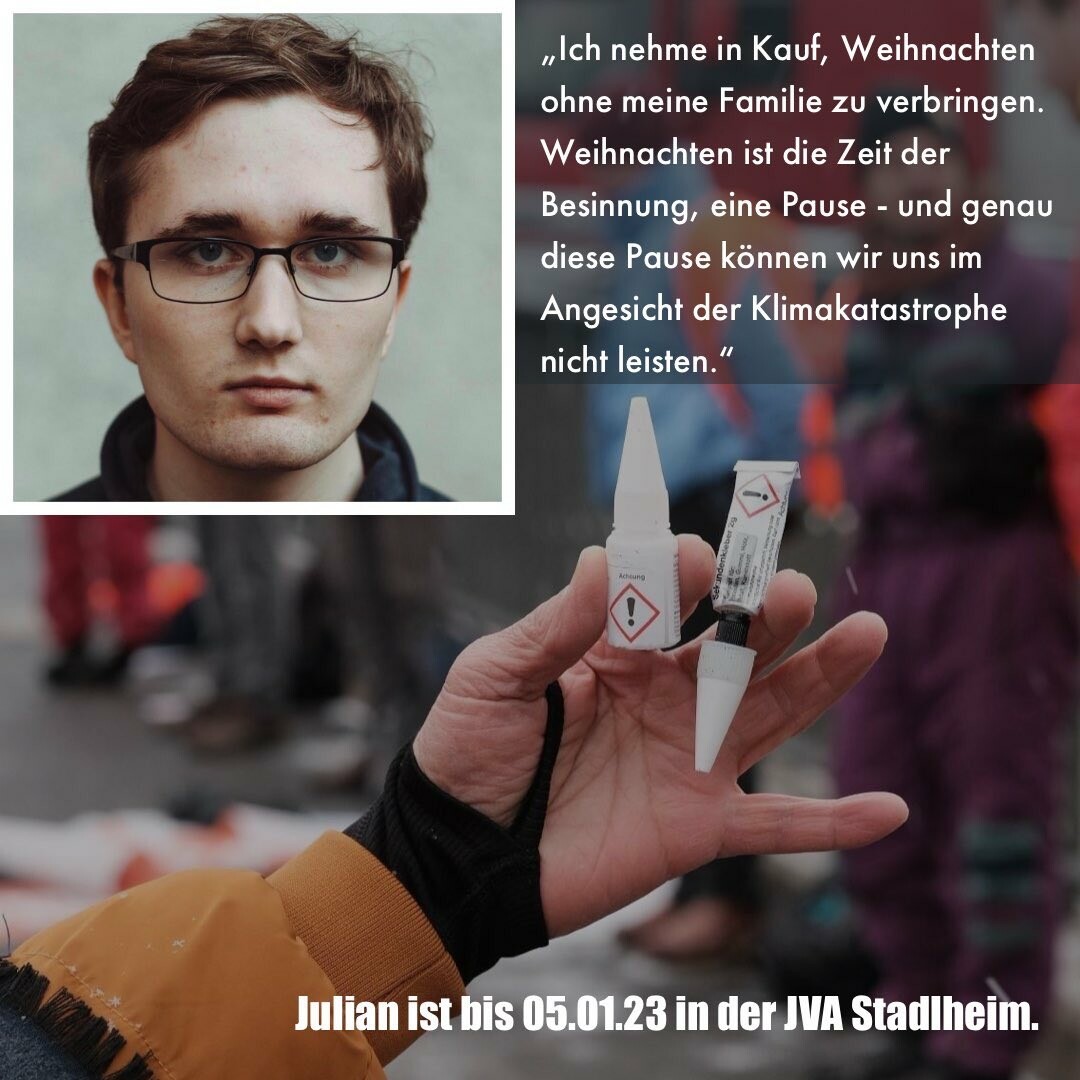 Julian ist wegen friedlichen Widerstands bis 05.01. in der JVA Stadelheim:
