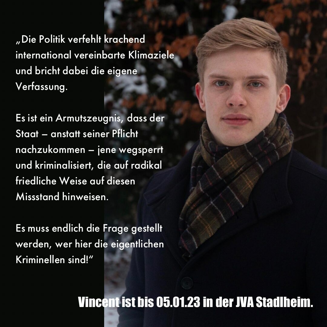 Vincent studiert Philosophie, ist 19 und bis zum 5.1. in #Präventivhaft. Er findet es entscheidend, dass Menschen das umsetzen, was sie für ethisch richtig halten.