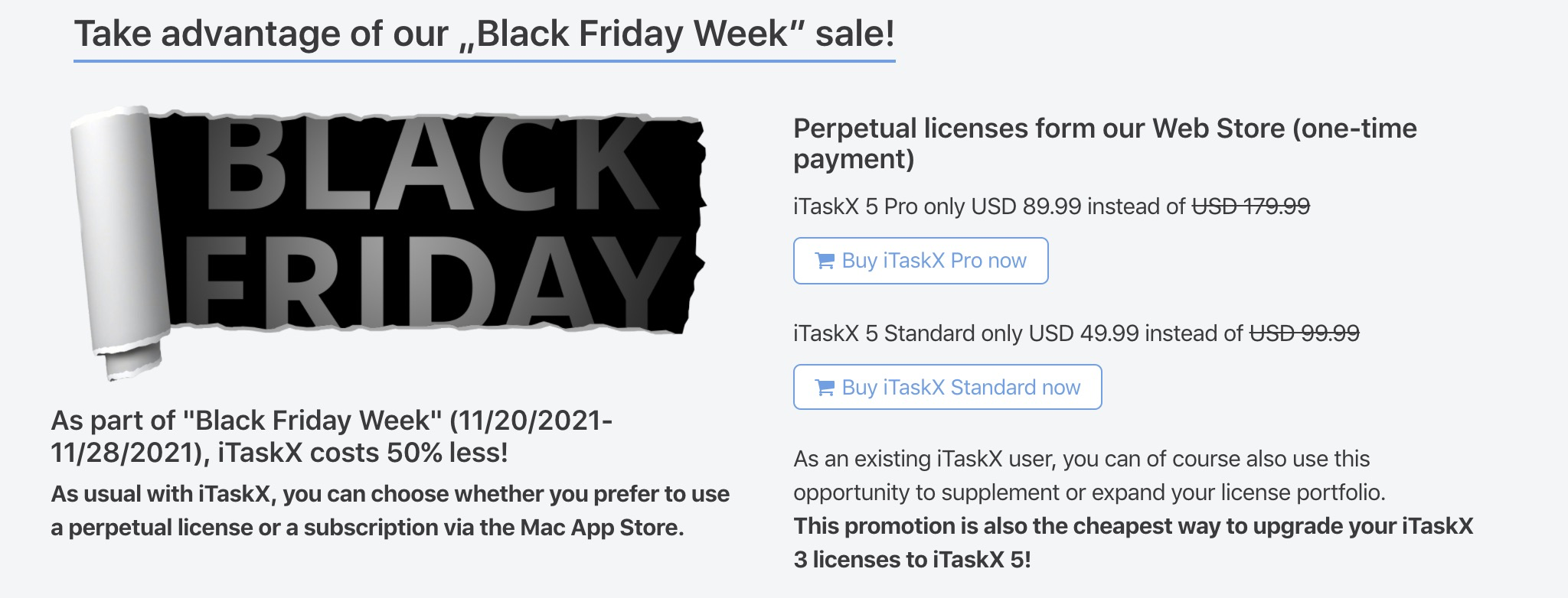 50% discount on iTaskX (50-90$) | #blackfriday #blackfriday2021 #preblackfriday | Mac Apps Deals / Sales | #iTaskX #task #todo #project | https://www.itaskx.com