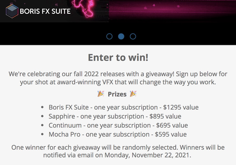 Win a Boris FX Suite for free (1295$) or other Boris products | #blackfriday #blackfriday2021 #preblackfriday | Mac Apps Deals / Sales | #boris #video #editing #fcpx | https://buff.ly/3HSgG6X