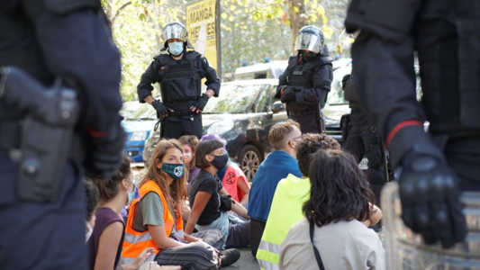 #Milano: blocco di attivisti climatici viene caricato dalla polizia davanti al #MiCo, in cui sono iniziati i lavori della #PreCOP26.