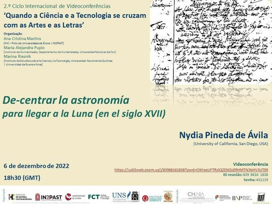 A convidada é Nydia Pineda de Ávila (UC San Diego) e o tema será a selenografia no século XVII.