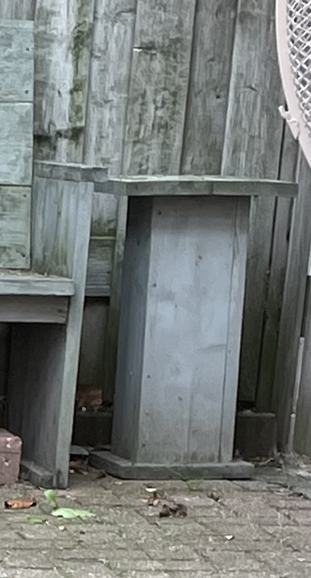 Het bijzettafeltje hoorde bij een steigerhouten bank (nr3) die de man getimmerd had en die wél naar de afvalstraat gegaan is.