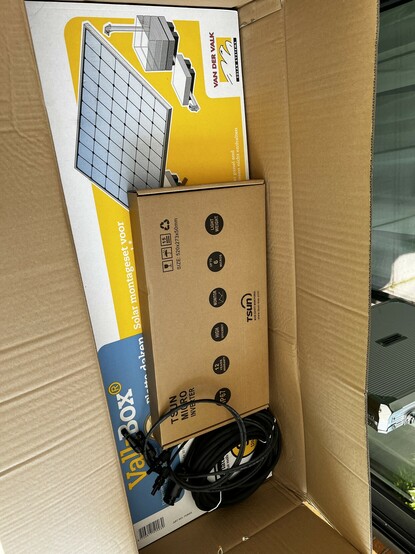 Heute geht es an den Aufbau, leider erstmal nur auf der Terrasse und nicht auf der Garage, da wir dort am Wochenende einen Wasserschaden hatten und nun erstmal der Dachdecker kommen muss … aber hey, immerhin haben wir eine Terrasse wo es erstmal passt und hier sieht man einmal das Zubehör von #Priwatt und den #Tsun #Wechselrichter