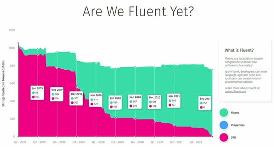 As of this week Firefox main UI is fully migrated to #projectfluent - it makes Firefox faster, more flexible and resilient. Kudos to the team! ๐https://www.arewefluentyet.com/?milestone=M1