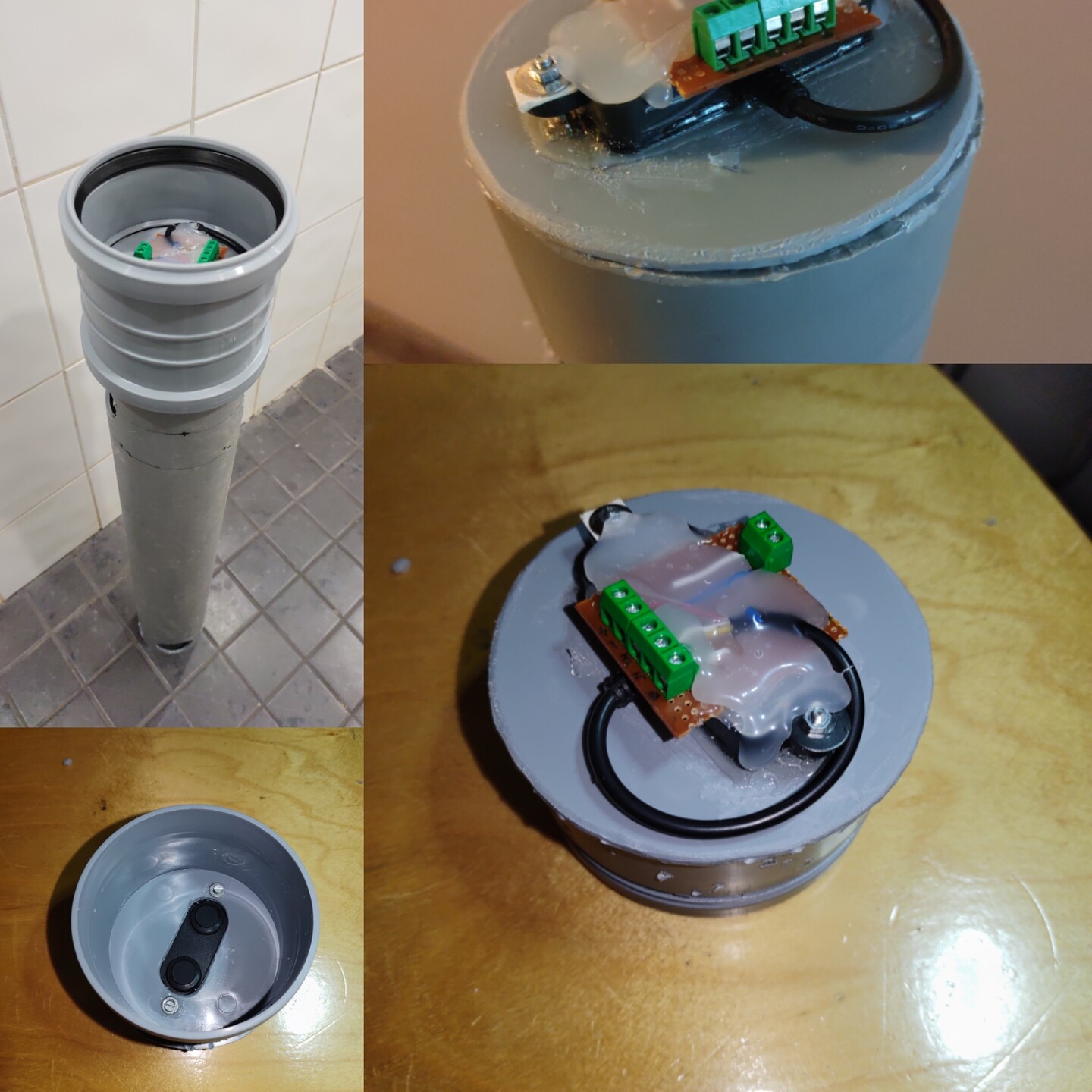 Anturina DYP-A02YY (UART), joka Arduinolla koodataan luotaamaan 110 viemäriputken sisällä humpaavaa veden pintaa. Lisänä tuohon väkerretään vielä veden lämpötilan mittaus NTC-vastuksella.