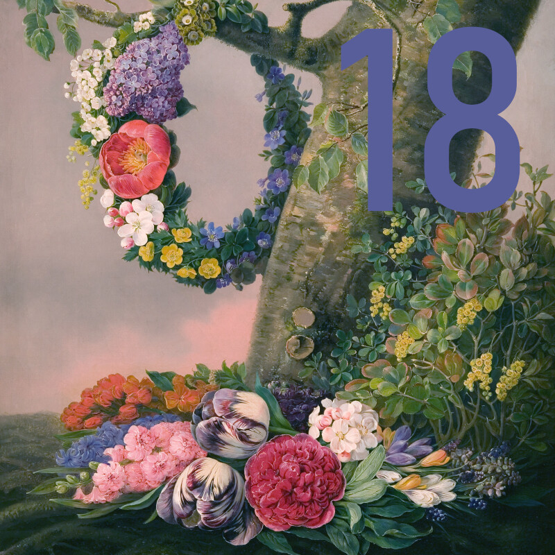 Eine weitere Fundgrube für Blumen-Kunstwerke ist die Sammlung des Statens Museum for Kunst in Kopenhagen, eingebunden über die SMK #API. 619 Datensätze zeigt im Bildarchiv die Suche nach "Blumen", z.B. dieses von Christine Løvmand (in der Original-Sammlung): https://open.smk.dk/artwork/image/KMS1260?q=En%20buket%20blomster%20ved%20foden%20af%20et%20tr%C3%A6&page=0