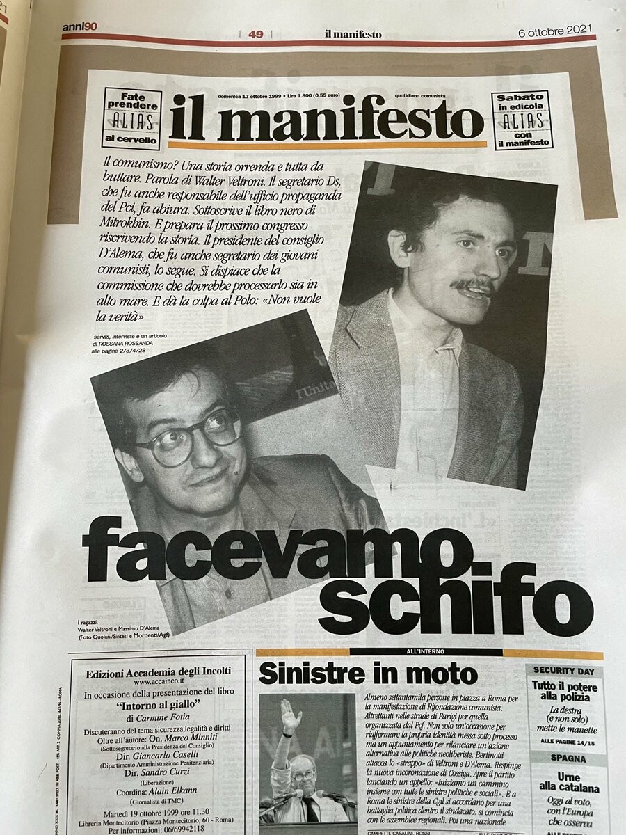 Un’indimenticabile prima pagina de @ilmanifesto@twitter.com del 17 ottobre 1999 contenuta nell’album speciale 1990-1999 in edicola da oggi @VeltroniWalter@twitter.com e #Massimod’Alema #comunismo
